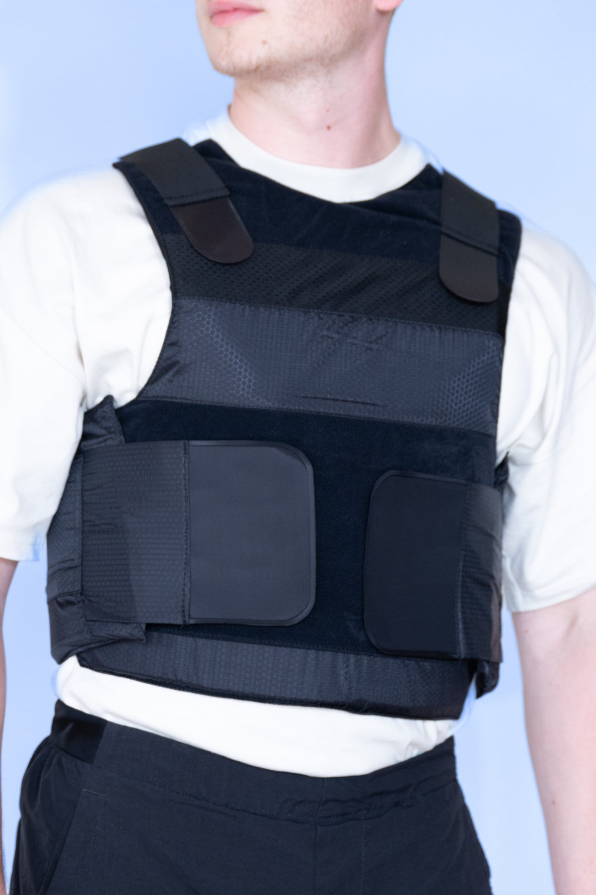 It has been designed to be snug fitting whilst also offering NIJ level IIIa ballistic protection from all rounds up to, and including. .44 magunum as well as NIJ Level 1 protection from knifes and spikes (equivalent to HOSDB level KR1/SP1)