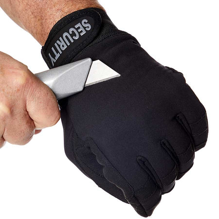 KNIFE PROTECTION: This glove would enable the wearer to grab a knife by the blade whilst protecting the hands from serious injury. The "Security" glove is not stab-proof (please see our stab proof body armour section for stab proof clothing).